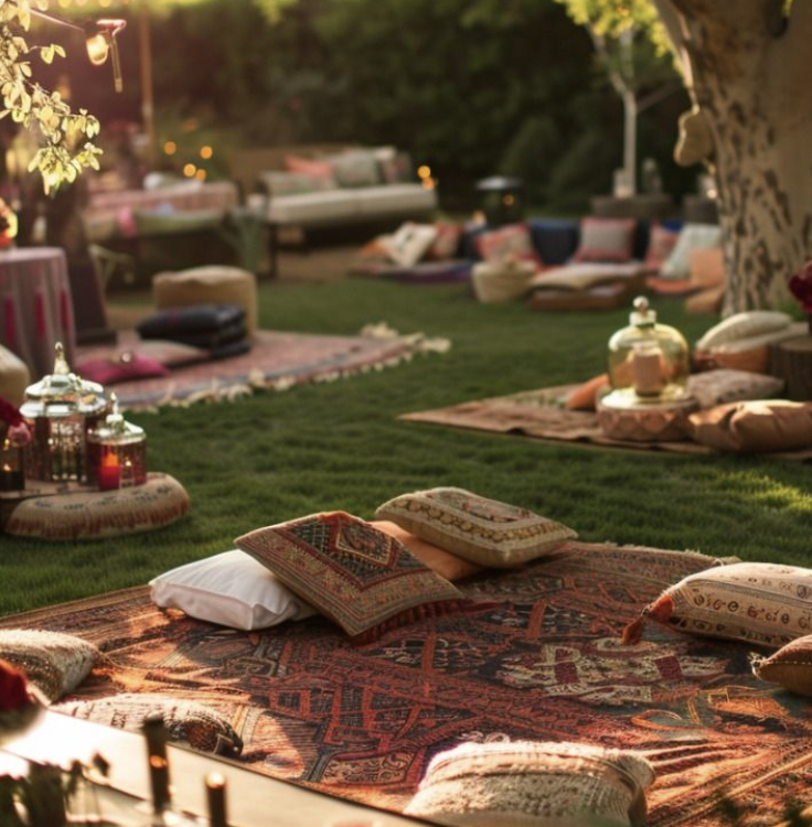 Communal Dining Experience: Share the meal in a warm and inviting atmosphere, featuring mixed seating on the ground and chairs.